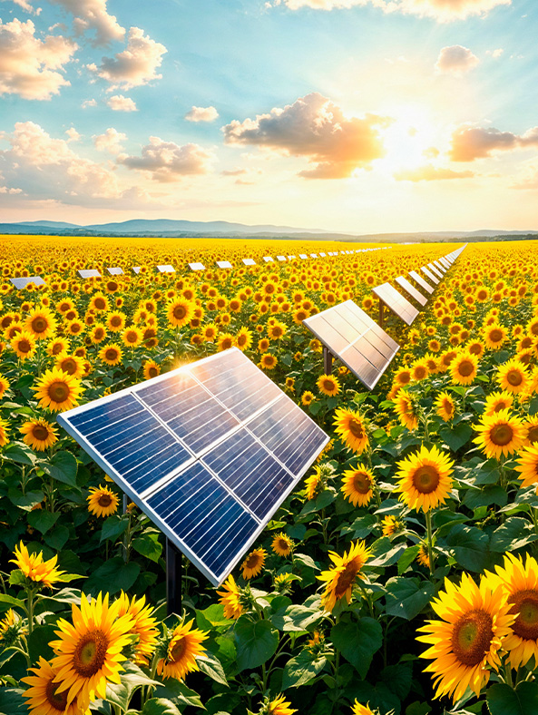 Güneş enerjisi üretimi için geniş arazilere kurulan sistemlerle, bağımsız enerji üretimini mümkün kılıyoruz.